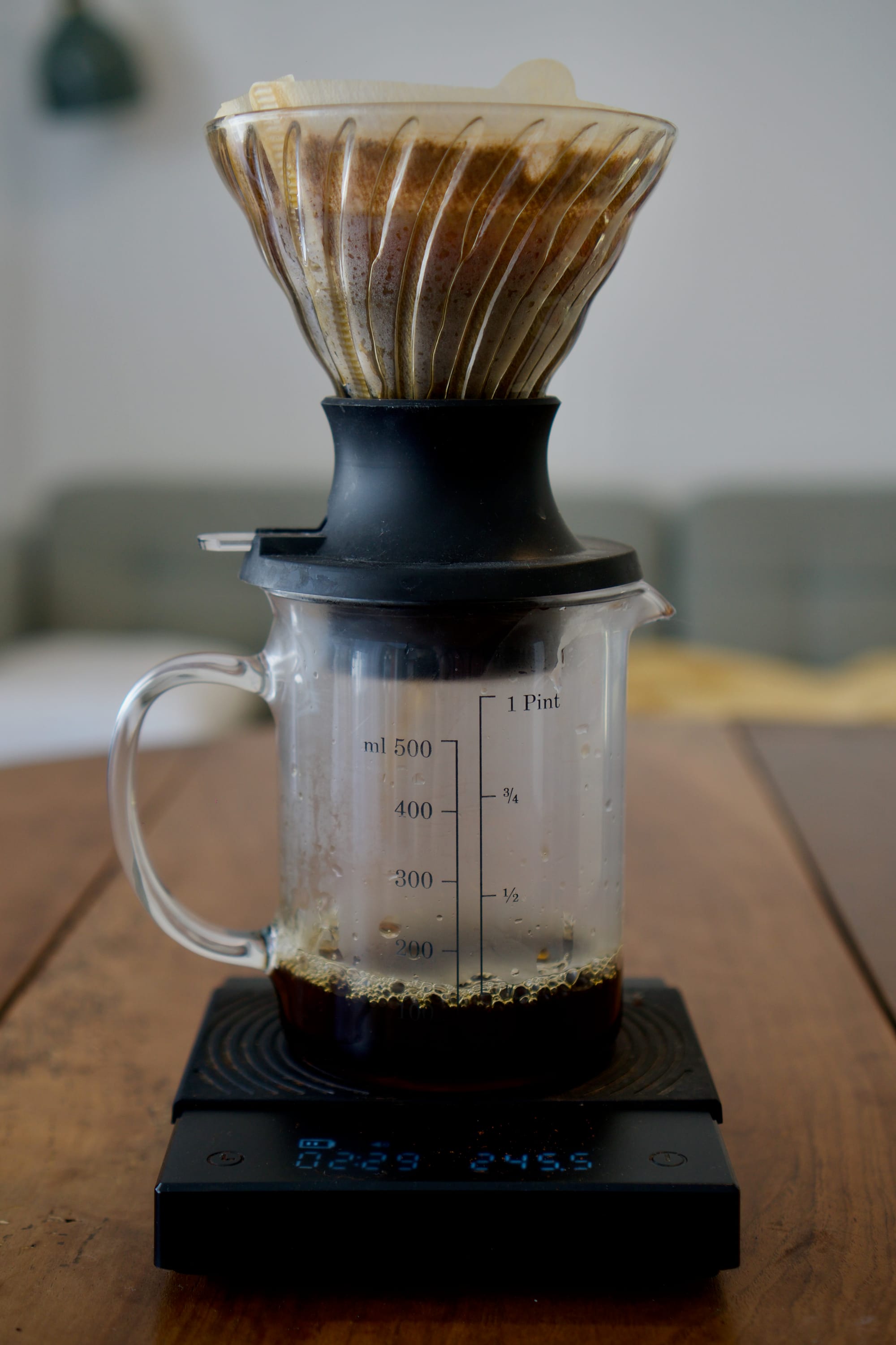 Je l'ai préparé avec le Hario V60 Switch, 16g de café moulu pour 250g d'eau. 45s pour les 45 premiers grammes d'eau pour la première étape et laisser le CO2 s'échapper puis je remplis jusqu'à atteindre 250g, de là j'attends 2minutes et je fais ensuite couler le café.